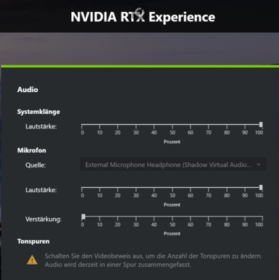 * Zu beachten ist, dass Nvidia ein eigenes Mikrofon verwaltet und das korrekt auszuwählen ist.